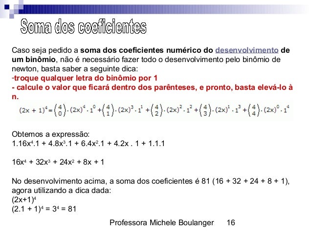 Até um elemento qualquer. A soma dos coeficientes de ab n é igual a 2n. Como achar a soma dos coeficientes do desenvolvimento de um binômio.