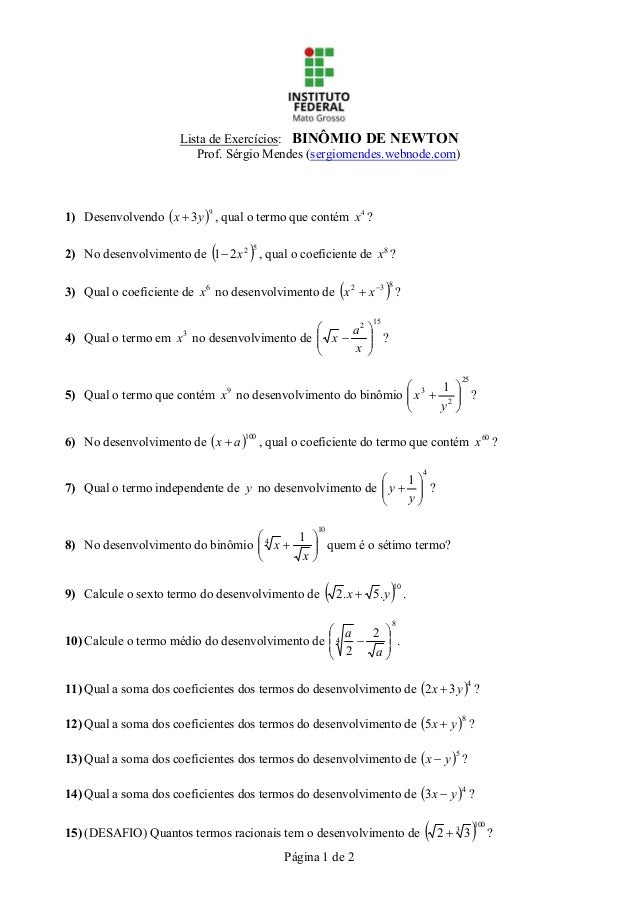 Doc Binomio Newton Resolvido Tiago Xavier Academia Edu