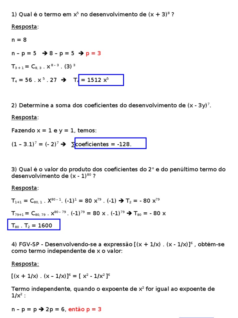 Binomio Newton Resolvido Pdf Ensino De Matematica Analise Matematica