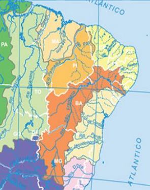O Rio São Francisco abrange a maior parte do semiárido nordestino além de banhar os estados de Minas Gerais Bahia Goiás Distrito Federal Pernambuco Alagoas e Sergipe. Na Bahia 34 Pernambuco 26 Alagoas 16 e Sergipe 11. Tem apenas oito afluentes permanentes.
