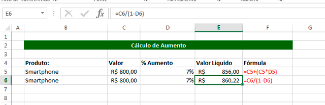 Em nosso exemplo o valor total está na célula B4 e o percentual na C4. Essa fórmula de porcentagem no Excel também pode ser aplicado ao fazer planilhas de investimentos. Para obter o resultado correto com essa fórmula use.